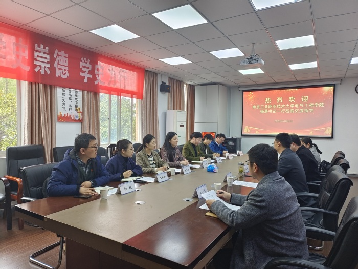 4月6日上午,南京工业职业技术大学电气工程学院书记杨燕、副书记王静等一行来威尼斯官网交流座谈,座谈会在三牌楼校区有线楼306会议室举行,威尼斯官网党委书记钟凯、副书记郭强等老师参加座谈交流。