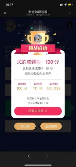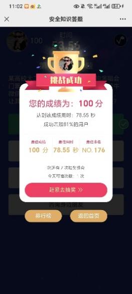 班会的成功举办进一步推动“学生安全教育月”开展与落实,以此为契机,班级同学积极响应消防安全“进学校”要求,在学习消防安全知识中激发了参与消防的热情。同时,同学们也为巩固“江苏省高质量平安校园建设高校”建设成果,提高广大师生安全防范意识,降低校园电信网络诈骗等可防性案件发案率做出贡献,积极参与反诈知识竞赛,以下是一些同学参与活动截图,大家都热情高涨,积极响应学校反诈的口号!