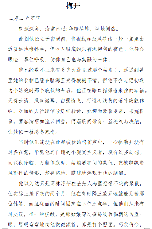 二等奖 外国语学院 林晓妍(笔名红糖糍粑)《梅开》