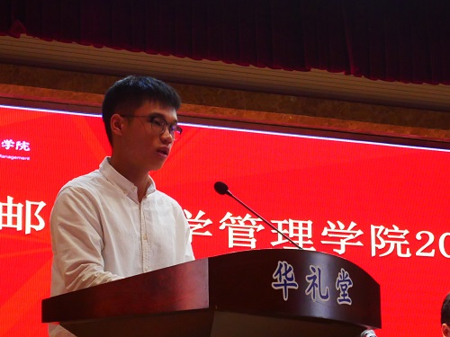 高年级学生代表、2017级工商管理专业蒋铭为为学弟学妹们提出了生活建议。培养一技之长,在大学时期明确自己的人生目标,为步入社会做出最全面的准备。