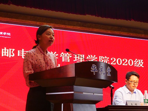 2020级新生代表孙晨进行了新生发言。作为南邮新生,要将校训“厚德、弘毅、求是、笃行”作为自己的人生信条,成为一个德智体美劳全面发展的南邮人。