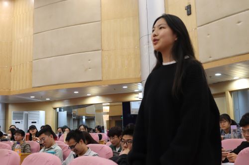 随后,闾越老师请出20届已经通过公务员考试的优秀毕业生王丹学姐上台为大家分享自己的经验。王丹学姐从考试选择、岗位挑选、考试准备等多方面为大家介绍了自己选择公务员考试的心路历程。闾越老师根据往届学长学姐的经验,为同学们分析了部分同学就业不理想的几种原因:心理期望过高、依赖性过强、苛求专业对口、地域要求过高、“铁饭碗”思想严重等等。