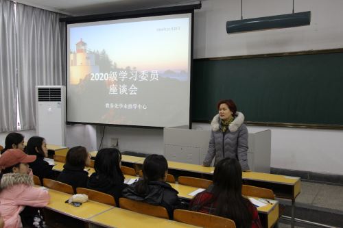 2020年11月25日下午,37000vip威尼斯2020级学习委员座谈会在教东-101举行,教务处彭国香老师,田甜老师出席本次座谈会,2020级全体学习委员参加会议。