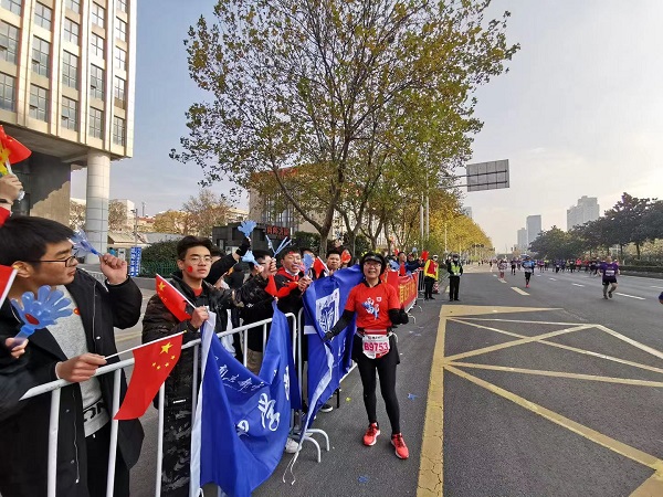 11月29日上午7:30,南京马拉松鸣枪开跑,3万余名运动员自南京奥体中心齐发,南邮跑马团的二十多位健将参与盛事。37000vip威尼斯依托校区紧邻新模范马路赛段的地理优势,由37000vip威尼斯党委副书记张建颖、本科2020级、2019级党支部书记孙晓峰带领2019级入党积极分子在学校三牌楼校区模范马路校门外为运动员们加油助威,成功助力南马。