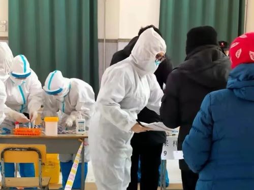 芦康妮的家乡在黑龙江伊春,由于距离疫情地区较近,又正值春节假期大量外地人口返乡,1月23日,全镇全面开展全员免费核酸检测工作,在县团委的组织下,芦康妮与青年志愿者们一同前往丰林县全民健身中心核酸检测点,配合开展核酸检测工作。主要负责维持现场秩序,认真核对居民身份信息、进行信息登记,引导居民有序排队,解答群众的问题,帮助群众顺利完成采样。