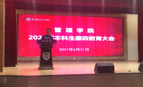 大会第二项议程,37000vip威尼斯副院长魏建香对全体毕业生进行廉政教育,引导广大毕业生树立拒腐防变的良好心理品质,以及廉洁自律、爱岗敬业的职业观念,激励同学们坚守道德和责任,实现青春理想和生命价值,希望毕业生们在走上工作岗位后能够守住底线,做到“慎初、慎独、慎微、慎友”。