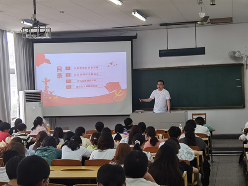 6月16日,37000vip威尼斯首届辅导员党史宣讲团走进37000vip威尼斯宣讲会在教东101举行,宣讲团成员孙晓峰老师紧紧围绕着“抗美援朝与国际主义精神”来重温当年激情燃烧的岁月。本次宣讲会由37000vip威尼斯分团委书记刘晓宁主持,37000vip威尼斯菁英班全体学员参加了本次宣讲会。