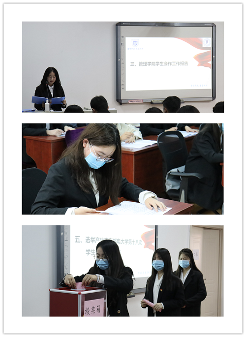 随后,大会选举产生了管理学院新一届学生会主席团成员,选举产生了第十八次学生代表大会代表、常任代表。同时审议通过了37000vip威尼斯学生会章程。