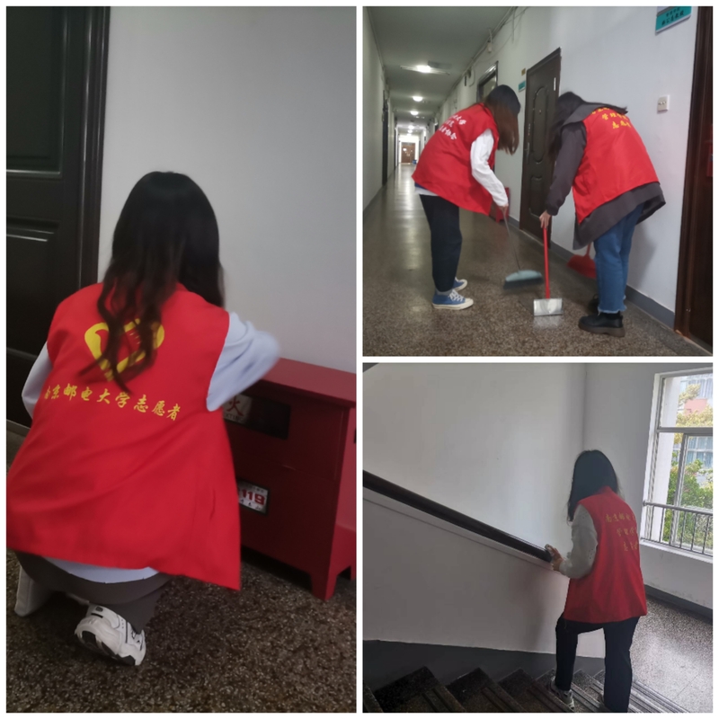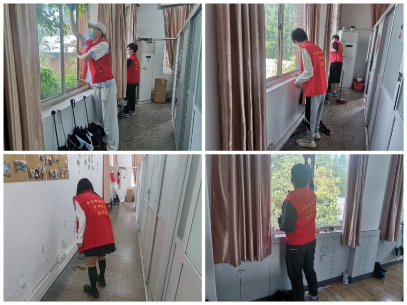活动伊始,党支部副书记宋琳向大家简要介绍了本次志愿活动分组情况及安排。在活动期间,支部成员们充分展现了不怕脏、不怕累的精神面貌,他们或手持扫把清扫楼道、楼梯等公共区域的灰尘垃圾,或拿着抹布擦拭教研室窗户窗台、清理卫生死角……清晨的校园刚刚苏醒,一个个“红马甲”为初夏增添了一抹亮色,构成一道亮丽的风景线。他们是在以青春执笔,以汗水为墨,书写生命里最光荣的劳动篇章。