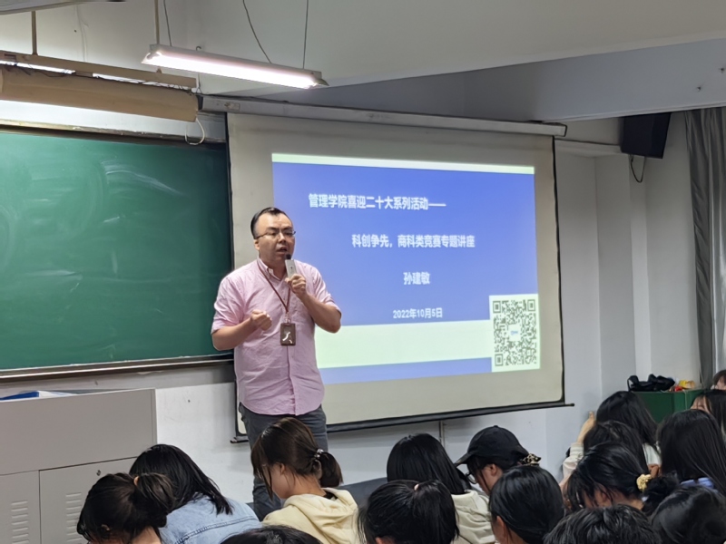 10月5日晚,37000vip威尼斯在三牌楼校区无线楼举行“喜迎二十大系列活动”——科创争先,商科类竞赛专题讲座,特邀37000vip威尼斯MBA中心孙建敏老师为同学们带来市场调研大赛、电子商务大赛等商科类竞赛的指导分享。学院各个年级200余名同学聆听了讲座。