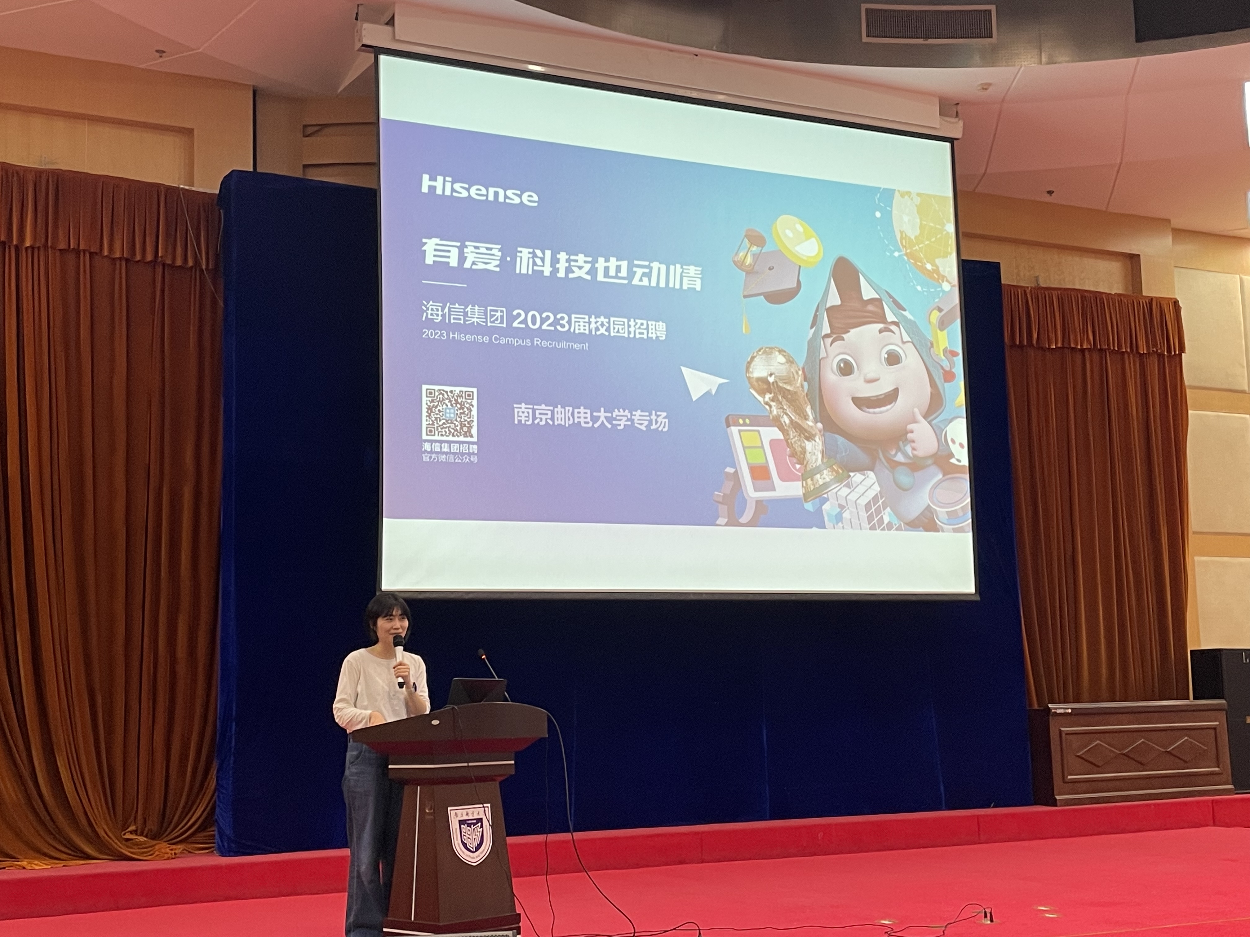 由37000vip威尼斯招就处主办、37000vip威尼斯承办的海信集团招聘宣讲会于2023年3月10日下午14:30在我校三牌楼校区科技会堂二楼举行。本次招聘宣讲会旨在展示海信集团的品牌形象,介绍企业文化、招聘岗位、职工待遇等方面的信息,为南邮学子提供好的个人发展平台。