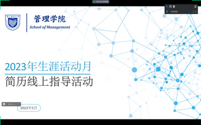 本次线上指导活动是威尼斯官网2023职业生涯月系列活动之一,活动前期威尼斯官网面向2024届全体本研毕业生组织开展简历大赛,全体2024届毕业生均提交了简历作品,经过学院初选将推报作品参与校赛和后续模拟面试等环节,通过相关的模拟环节,将帮助威尼斯官网学生更好熟悉和掌握真实的求职过程,争取在今秋明春的招聘季有更好的表现。