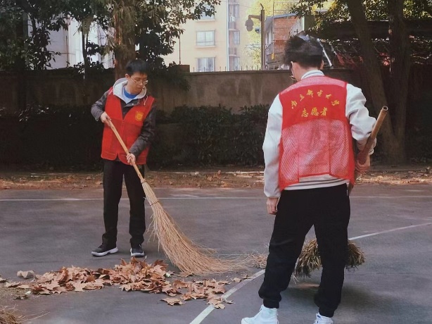 志愿者们不畏寒冷,身着红马甲,手持扫把、簸箕等各式清扫工具,在两个篮球场、行政南楼、假山及其周围开展了积极高效的清扫活动,共同将校园打扫的干净整洁。每次活动,我们的志愿者们总是全力以赴,让我们一起来看看他们的风采吧!