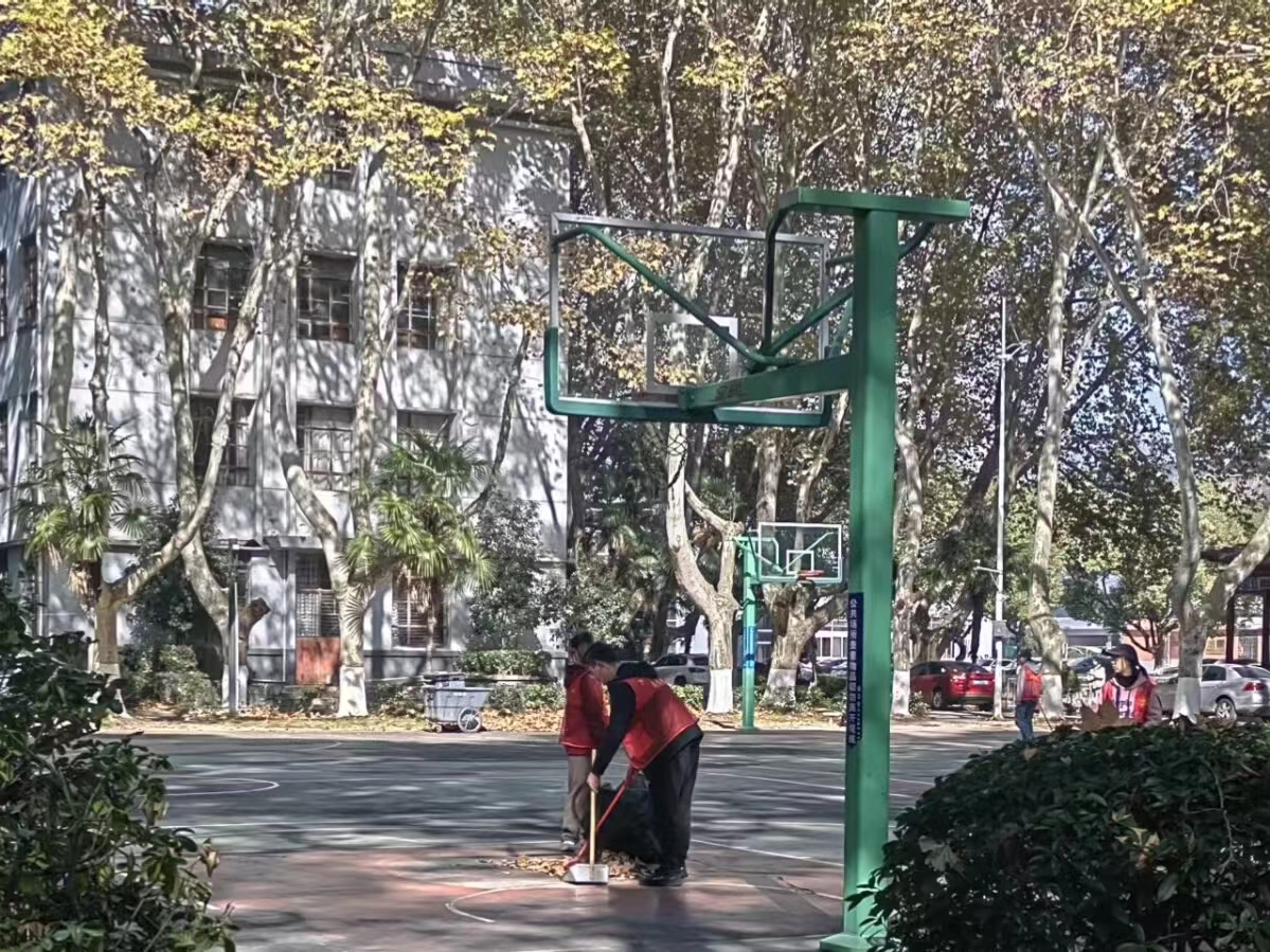 冬天的寒风已经悄然来临,志愿者们却不惧冬日寒霜,身穿红色马甲,手持打扫工具,在篮球场、假山周围、行政南楼和眼镜湖周围进行了积极有效的清扫活动,他们以高昂的热情、认真的姿态共同使我们的校园焕然一新。