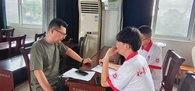 在新嵇村村委会,团队成员遇到了村生计主任蒋秋平。蒋秋平详细介绍了村内的具体情况,并解答了团队成员们的疑惑。