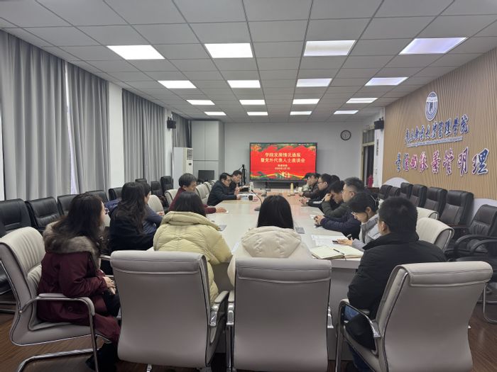 1月7日上午,我院在三牌楼校区306会议室召开学院发展情况通报暨党外代表人士座谈会。党外人士代表、教师代表、全体教工支部书记和全体辅导员齐聚一堂,共话学院发展成绩,共谋未来发展蓝图。会议由学院党委书记葛敏主持,学院党委副书记郭强出席会议。